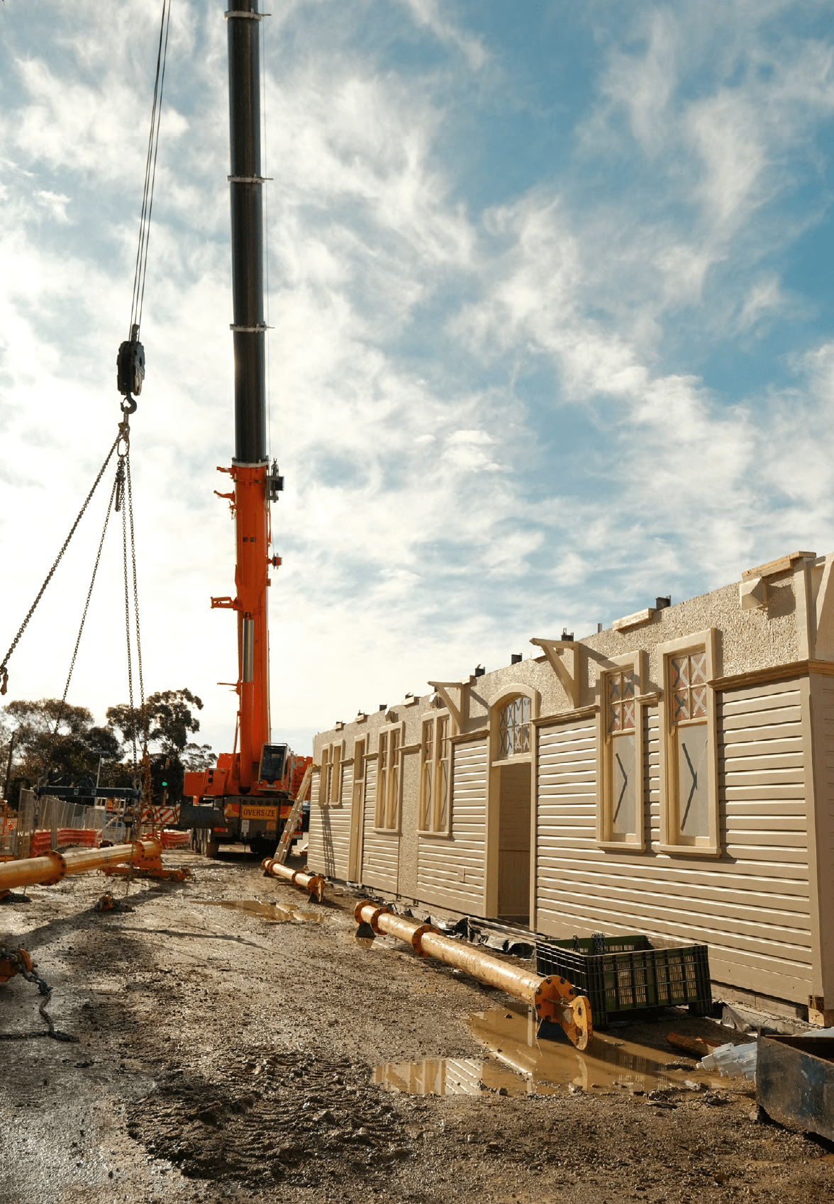 The culmination of our efforts resulted in the installation of the relocated Mont Albert station building in two primary modules: the wall and roof module. This meticulous segmentation ensured a smooth and precise installation process, carefully executed through the utilization of a crane, significantly reducing on site construction time.